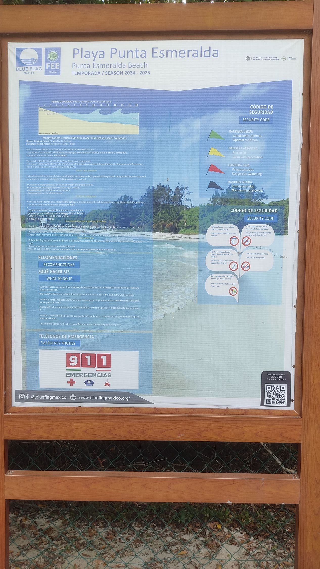 es una Playa Inclusiva Certificada por Blue Flag que se junta con un pequeño cenote de agua dulce y cuenta con las siguientes características: