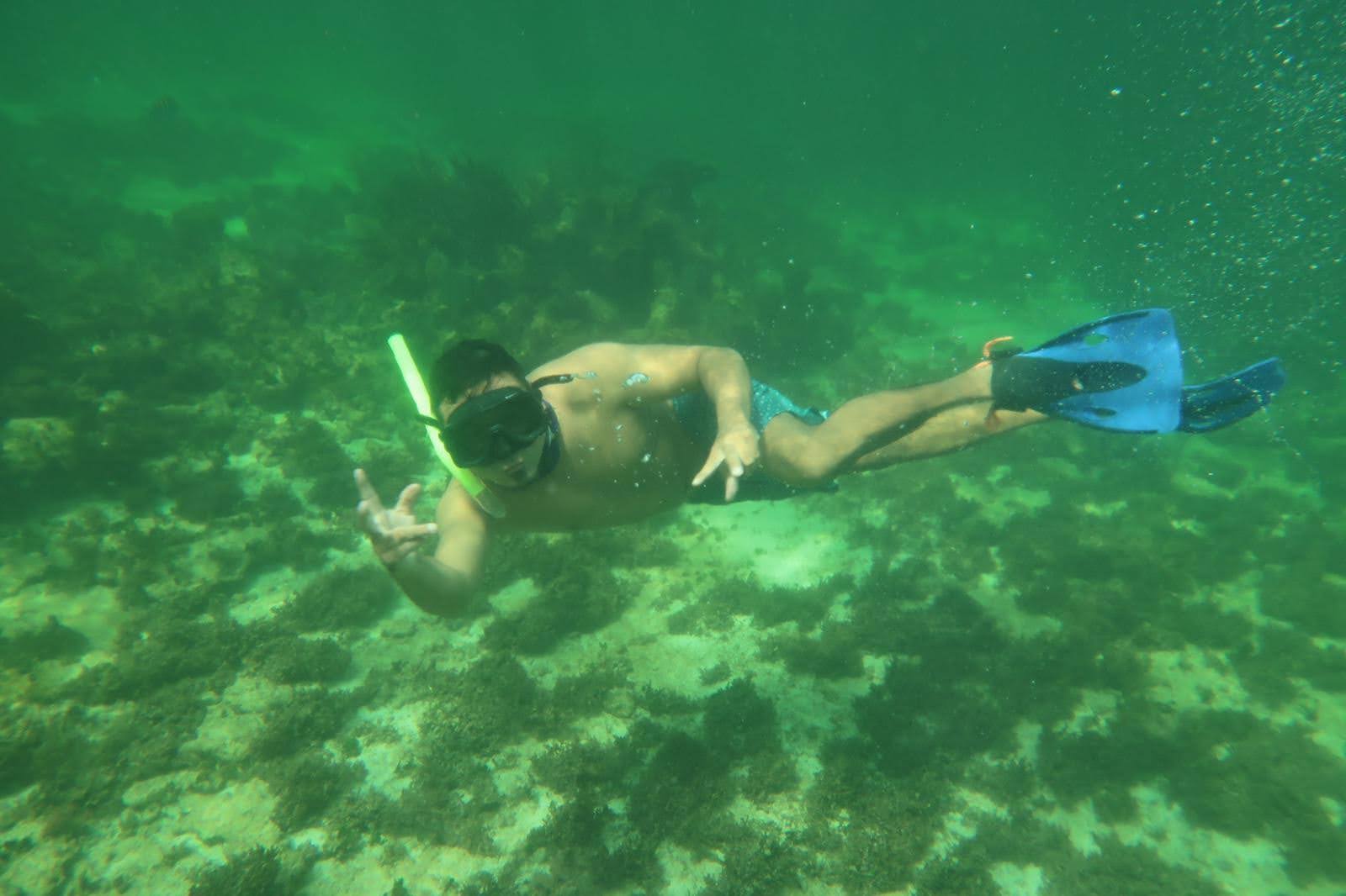- Снаряжение для подводного плавания (жилет, козырек, трубка и ласты); все как следует продезинфицировано.